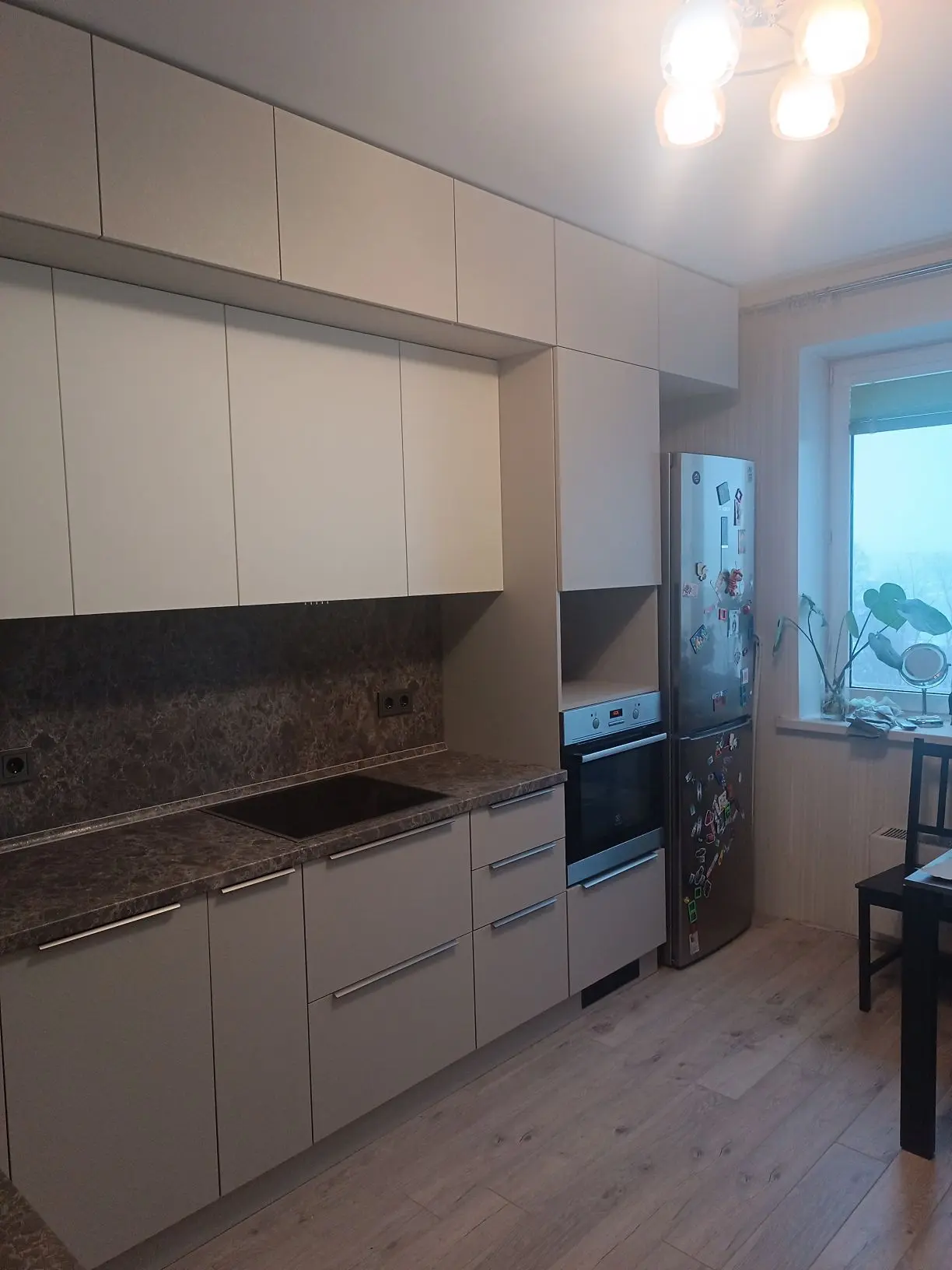 Угловая кухня выполнена с фасадами из МДФ AGT