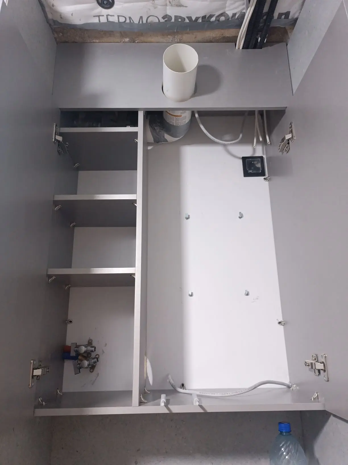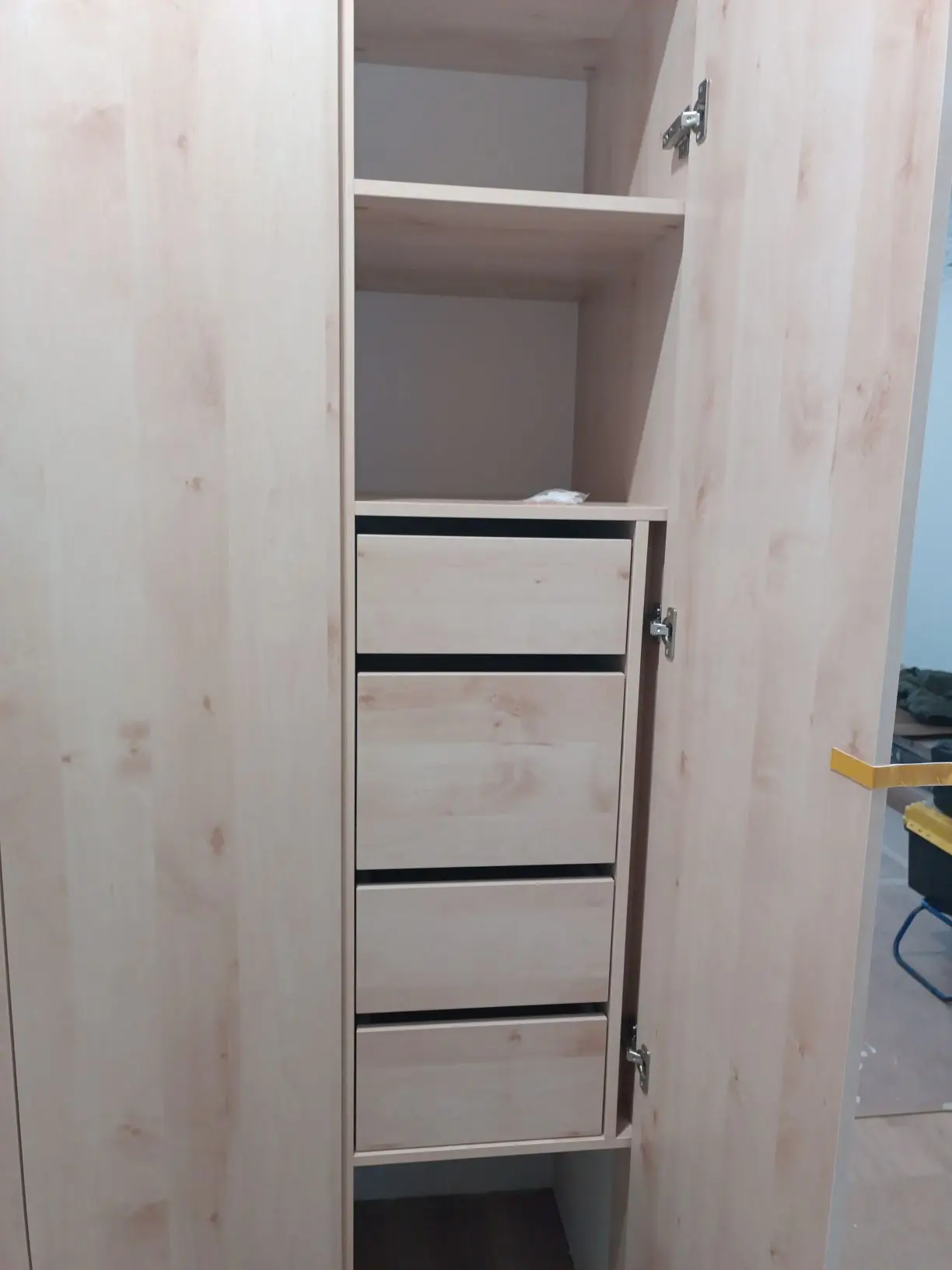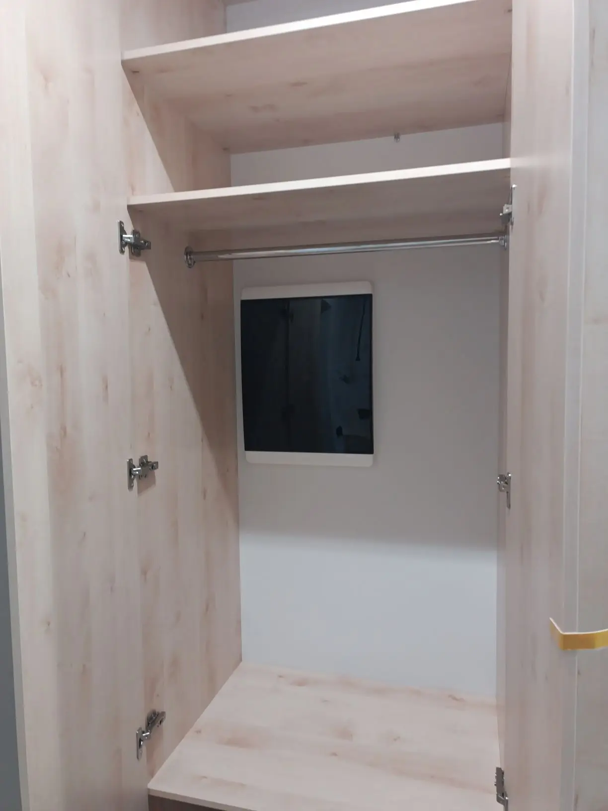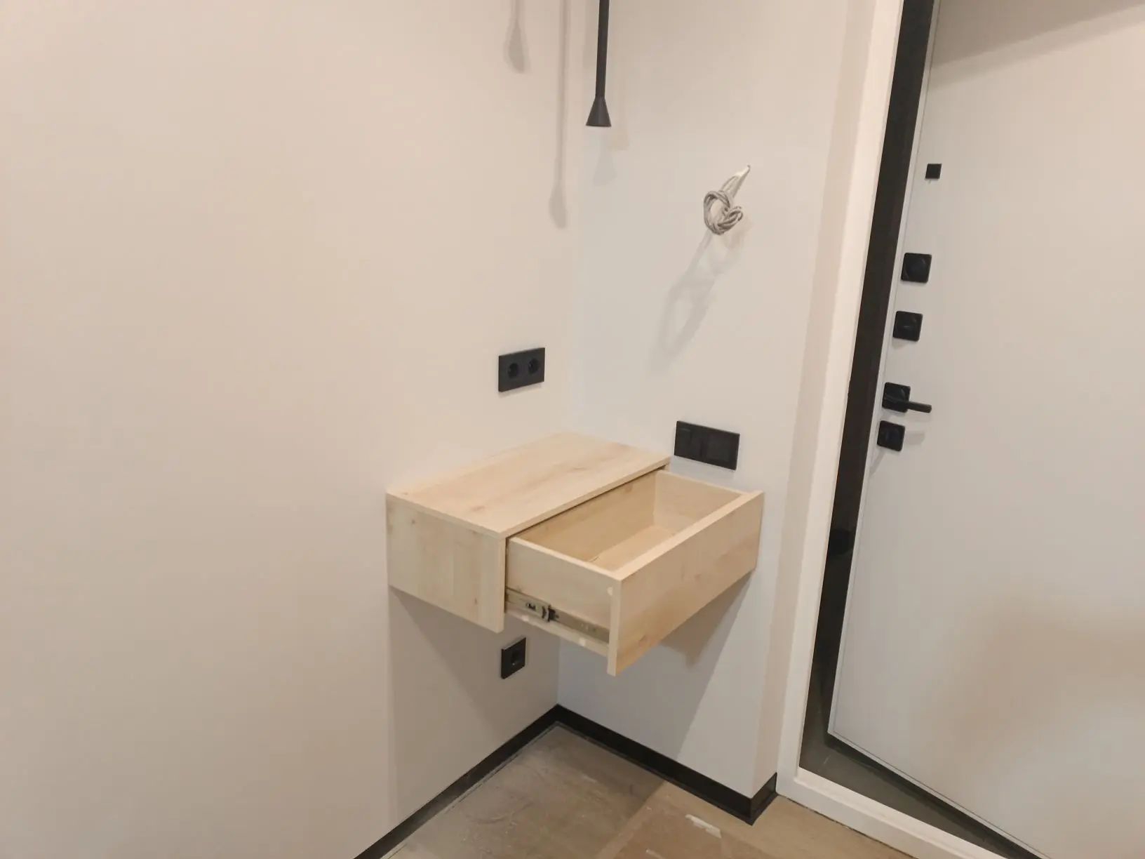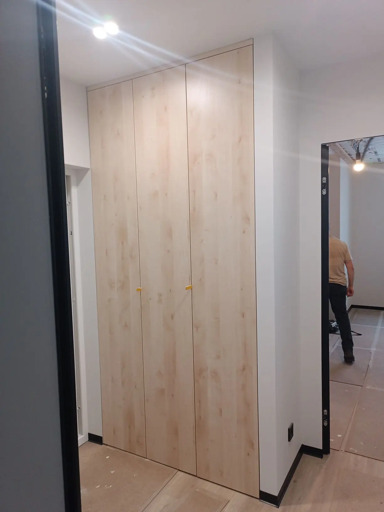 Встроенный распашной шкаф в прихожую. Фасады и корпус из ЛДСП Ламарти Береза Нордик. Петли без пружин, ящики с доводчиками DTC, Китай. Инсталляция из ЛДСП Ламарти Титан. Петли без пружин.
